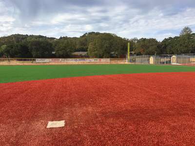 Baseball field features well maintained infield and outfield ideal for baseball practices or games. Includes dugouts and spectator stands (ADA ramp access)