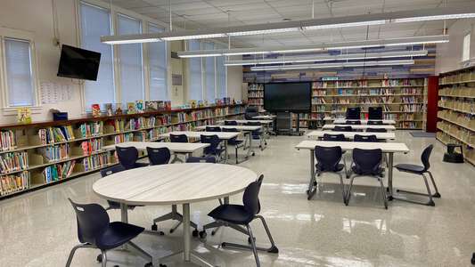 The Library is equipped with tables, chairs, computers, and a projector screen. This space is perfect for large meetings, classes, and tests.