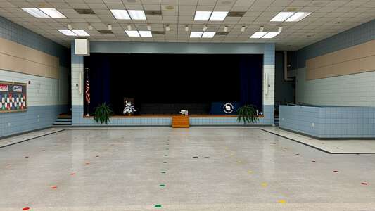 The Cafetorium is equipped with tables, chairs, lights and sound, a stage, and a projector and screen. This space is perfect for large meetings, performances, classes, seminars, and many more activities. The Cafetorium may be combined with the Cafeteria. Capacity with Cafeteria: 475