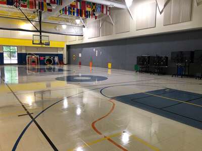 The main gym can accommodate large meetings, conferences, and numerous indoor athletic activities including basketball and volleyball practices and games. This space is equipped with full court, locker rooms, a scoreboard, a stage, and sound.