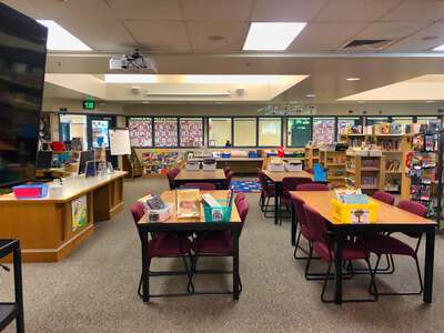 The Library is equipped with tables, chairs, computers, and a projector screen. This space is perfect for large meetings, classes, and tests.