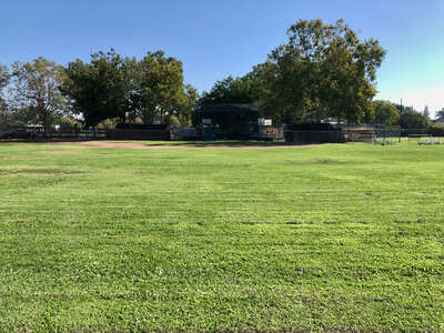 The baseball field features a well-maintained infield and outfield, making it ideal for practices and games. The outfield grass can also host other field sports.