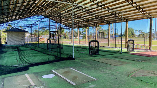 Batting cages features well maintained batting facility ideal for baseball practices or games.
